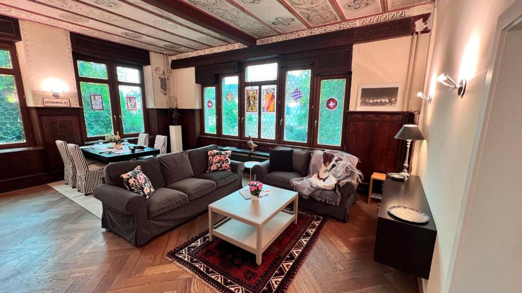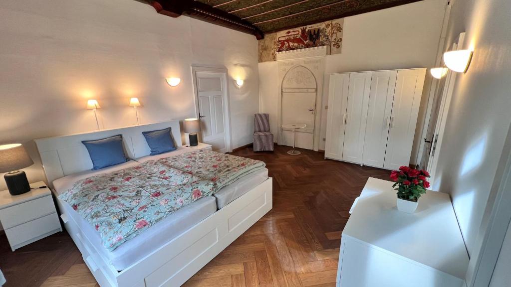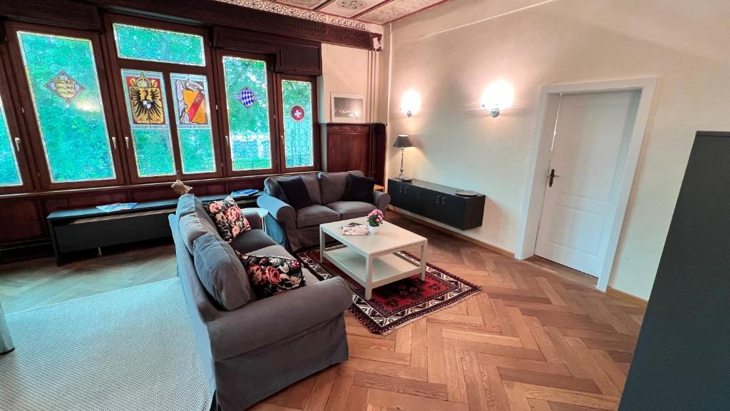 Historisches Ambiente in direkter City und Seenähe gelegen. Die Wohnungen verfügen über 2 - 3 großzügige Schlafzimmer mit 4 Übernachtungsmöglichkeiten. Sowie ein Badezimmer und ein Gäste WC. Geräumige Garderobe im Eingangsbereich und einen Hauswirtschaftsraum . Ein P-Platz direkt vor dem Haus steht zur Verfügung. Fahrräder können am Haus abgestellt werden. Auf Wunsch kann in den Wohnungen auch ein Schreibtisch mit Bildschirm und Drucker zur Verfügung gestellt werden. Das Apartment mit zwei Schlafzimmern und Gartenblick hat eine Garten.
