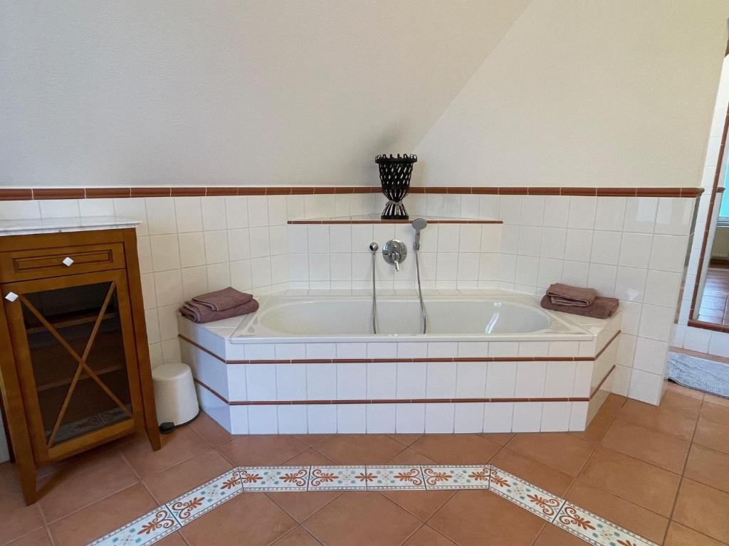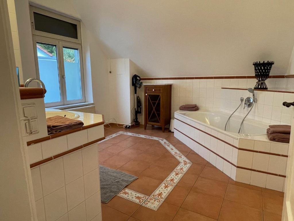Diese geräumige Ferienwohnung verfügt über ein Wohnzimmer, 3 separate Schlafzimmer (1 Doppelbett, 1 Einzelbett, 1 Franz. Bett 1,40m , Kinderbett kann jeder zeit dazugestellt werden) sowie 1 Badezimmer mit einer Badewanne und einer Dusche. Ebenfalls gibt es auch ein Gäste WC. Die Küche ist gut ausgestattet, es erwarten Sie ein Kochfeld, ein Kühlschrank, ein Geschirrspüler, Küchenutensilien, sowie ein geräumiges Esszimmer. Zu den weiteren Annehmlichkeiten der Ferienwohnung gehören ein Flachbild-TV mit Streaming-Diensten, eine Waschmaschine, ein Trockner, Tee- und Kaffeezubehör, ein Kleiderschrank sowie Gartenblick. Die Wohneinheit ist mit 3 Betten ausgestattet.